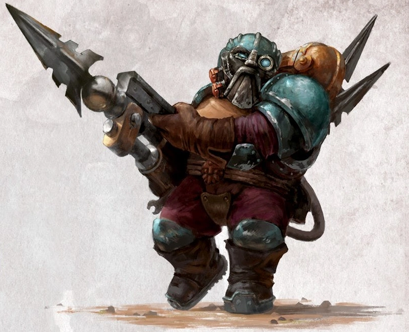 Los especuladores duardin de Barak-Urbaz se distinguen por su ropa rosada-púrpura y la armadura de acero con un tinte azul verdoso distintivo.