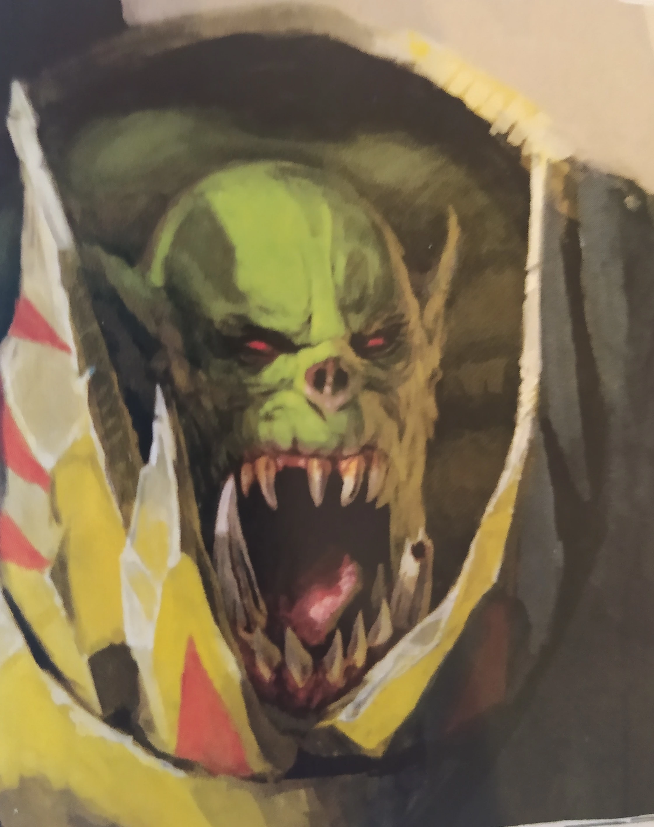 El Megajefe y su Maw-Krusha impactaron en el trono de la vampira como una bala de cañón. Espíritus dispersos y el aquelarre de Aylessa fueron lanzados a tierra, cayendo sus fragmentos en todas direcciones. Aylessa surgió, como una mancha pálida, llena de gracia y de muerte. La hoja de su espada talló un profundo surco en la armadura de Dakkbad, pero éste apenas se dio cuenta. Skullzcrakka se abalanzó sobre la progenie de Aylessa, y el único vampiro que logró trepar al lado del Maw-Krusha fue recibido con un cabezazo de Dakkbad.