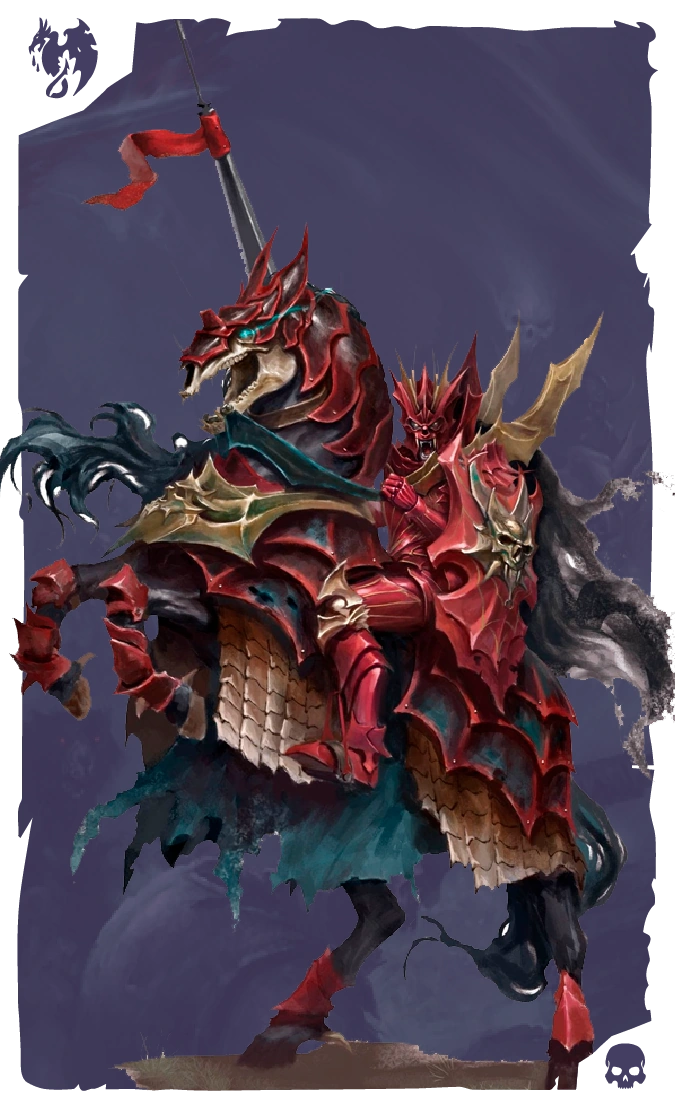 Son guerreros afectados por la Maldición Pudrealmas que cabalgan corceles Pesadillas y portan lanzas y espadas de ornamentado diseño.[BTLDN'18 1] Han dedicado su larga vida a dominar las artes del combate.[BTNP'21 1]