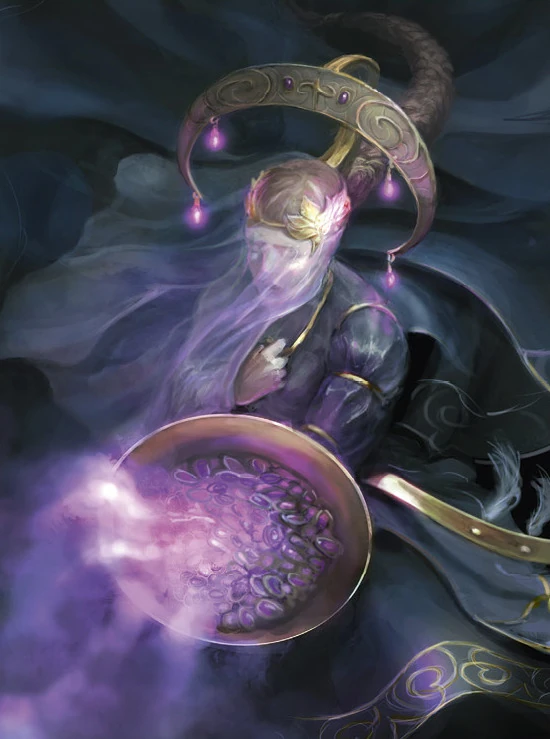 Además, conjura ilusiones que llenan las mentes de sus enemigos con pensamientos oscuros y emociones negativas, lo que les dificulta hacer otra cosa que no sea contemplar su propia existencia fútil.