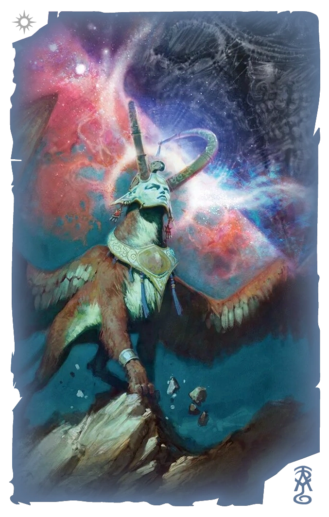 Como poco más que una proyección astral de su propia alma, Teclis suplicó a Celennar durante muchos días y noches. Fue recompensado solo con silencio y duda. Cuando el cuerpo lunar fue eclipsado por Ulgu, pasando a la oscuridad a medida que se acercaba al punto crucial entre los Reinos de la Luz y la Sombra, Teclis se sintió acosado por tal desesperación que contempló arrojarse al vacío para nunca regresar. Sin embargo, cuando la luna verdadera emergió de la sombra una vez más, allí encontró una criatura extraña y maravillosa. La esencia de Celennar había tomado forma, manifestándose como una bestia leonina alada con una máscara serena en lugar de rostro.