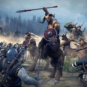Los centigors son criaturas descomunales con el torso musculoso de un hombre bestia y la parte inferior del cuerpo de un animal de cuatro patas. Corren a toda velocidad por el campo de batalla en formaciones al azar, lanzándose hacia las líneas del frente o dando vueltas para flanquear a sus enemigos, y con toscas lanzas llevadas en manos humanas se estrellan imprudentemente contra su presa. Las puntas de hierro se hunden en la carne y atraviesan las costillas; los muros de escudos se derrumban y las monturas empaladas se clavan en el suelo. Mientras los enemigos se tambalean bajo el peso del impacto, los Centigors retroceden, golpeando con sus patas delanteras con garras mientras se preparan para atacar de nuevo con sus lanzas.