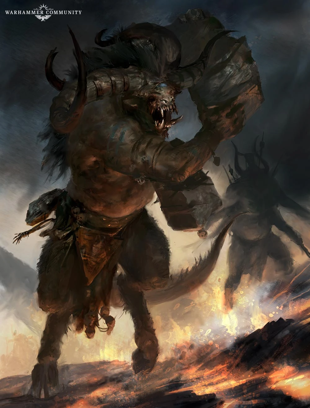 Al igual que los Ghorgons, los Cygors son una raza de bullgor monstruosamente deformada cuya maldición les hace tener hambre no de carne, sino de magia. Los antepasados de los Cygors se comieron a los chamanes, así como a los médicos brujos y magos de las tribus humanas primitivas y aelf. Al digerir esta carne hechizada, los Cygors se deformaron a proporciones gigantescas. Sus ojos convergieron en un único órgano brillante en el medio de sus frentes, un orbe ciclópeo que es ciego a la materia física pero que puede ver las almas empapadas de magia de los magos ardiendo como llamas en la oscuridad. Esto permite a los Cygors elegir a su presa favorita en medio de una batalla encarnizada, tras lo cual se abren paso pisando fuerte a través de filas de enemigos mundanos para deleitarse con la carne de los encantados.