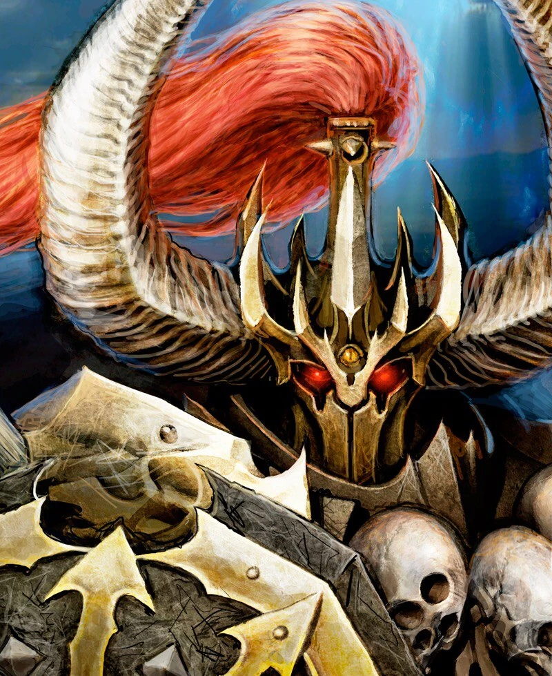 - Khorne envió más y más legiones a Shyish buscando refrenar la enorme horda de muertos vivientes que amenazaba con desbordar a los Reinos Mortales. La mayoría de sus éxitos tuvieron lugar en la Campaña de Hallost y en la conquista de territorios cercanos a la ciudad de Gothizzar, Omnipuerta bajo el control del Caos. Otros esfuerzos bélicos, como la conquista de Ossia, terminaron en fracaso.