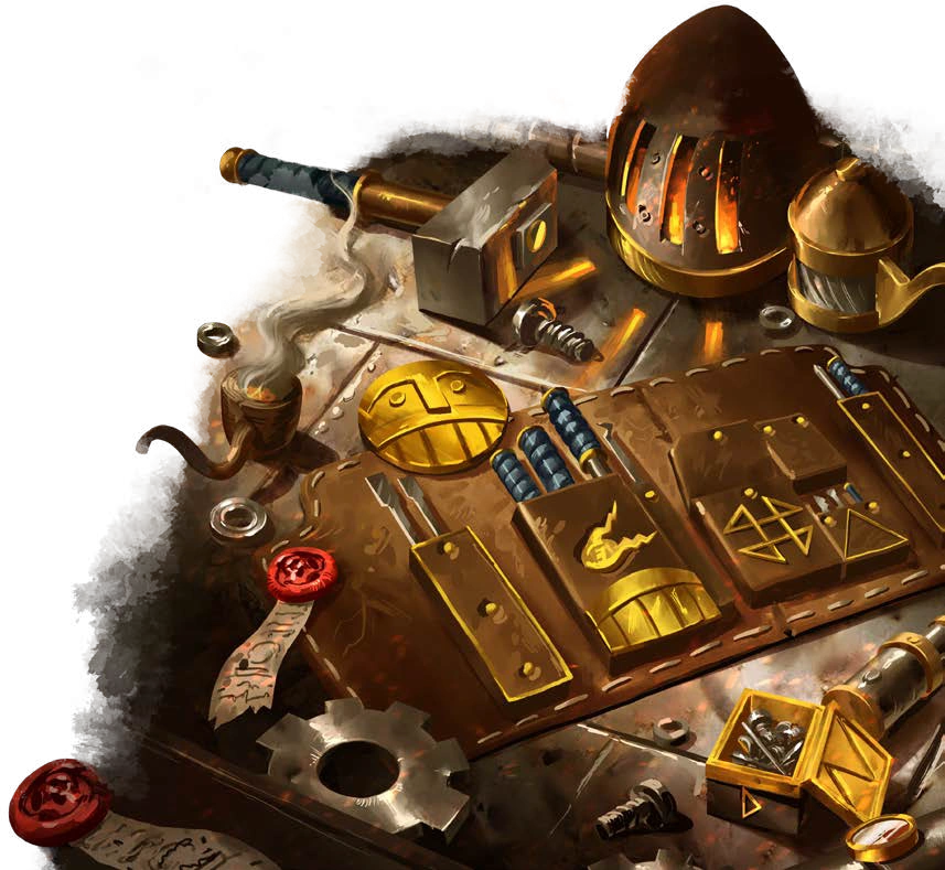- El culto de Khorne esta presente y ha echado raíces en la ciudad. Influenciados por la retórica de gloria o muerte, muchos han caído ante el corrupción del Caos; incluyo dentro del Consejo de la Fragua y el Gran Cónclave.