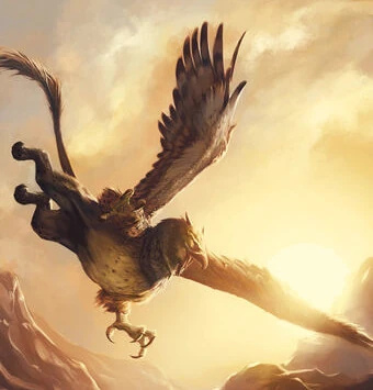 Un Grifo es un cazador alado de las llanuras de Azyr. Esta bestia es una vista impresionante y terrible de contemplar en la batalla. Los Generales Freeguild valoran a estas nobles bestias por encima de todas las demás monturas, llevándolas a las profundidades de la batalla e inspirando a sus hombres a la victoria. Con garras como cimitarras y un pico que puede pelar el hierro, estas monturas se convierten en compañeros leales y mortíferos. Sentado a horcajadas sobre una bestia así, el General Freeguild sobrevuela el campo de batalla, analizando el flujo y reflujo del combate. Si su presencia es necesaria para apuntalar un flanco vacilante, el General atacará desde los cielos como un cometa. Mientras el Grifo se lanza sobre docenas de enemigos en una nube de pelo, sangre y garras azotantes, el guerrero que lo domina da un grito de guerra y levanta un arma con runas marcadas para hacer avanzar a sus tropas.