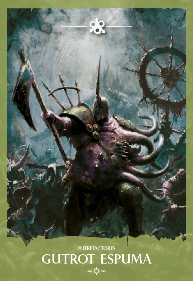 | Claves: Caos, Mortal, Nurgle, Agusanados de Nurgle, Héroe, Gutrot Espuma. | |
