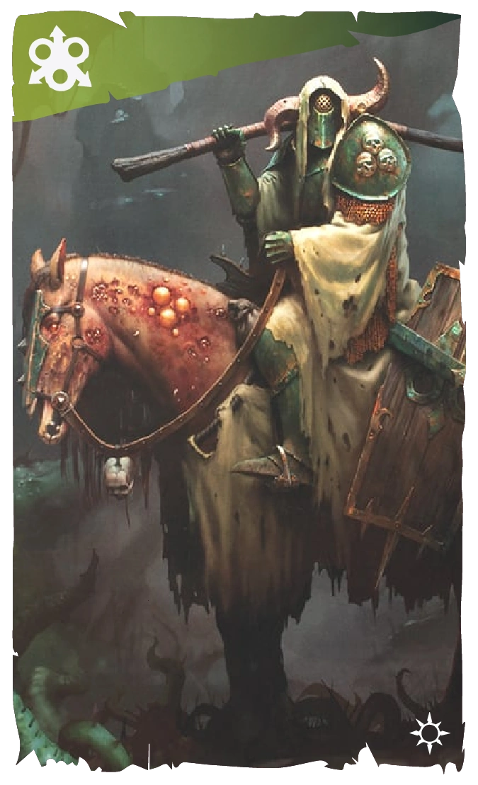 Estos Putrefactores son seres cuyo objetivo es garantizar la entropía tanto en el plano físico como el espiritual, siendo los vectores más puros de la fatalidad. La miseria emana de sus cuerpos y la esparce como una nube de dudas que infectan la mente y corazones con autodestrucción y arrepentimiento paralizante. Los Heraldos de la Putrefacción aparecen tras una neblina amarillenta con sus cuernos podridos y túnicas que cuelgan como carne gangrenosa. Su corcel aguanta el peso de su jinete y su carne está tan podrida que los gusanos se ven en varias partes de su cuerpo.[P1:H 2]
