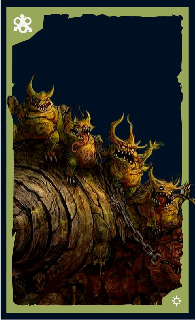 Su sola presencia en los Reinos Mortales atraerá más de estas criaturas desde el Jardín de Nurgle, haciéndolos casi imposibles de erradicar.[BTMON3'21 2]