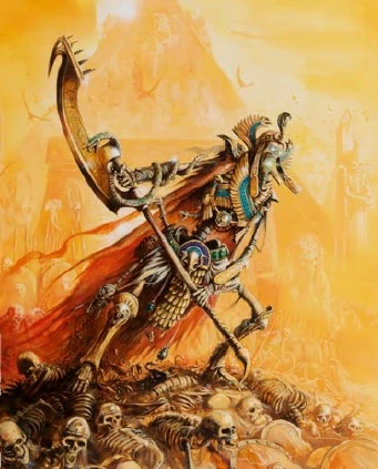 En Shyish, las tierras de los muertos son el hogar de ejércitos de No Muertos, y entre ellos se encuentran las falanges de los Reyes Funerarios (Tomb Kings en inglés).